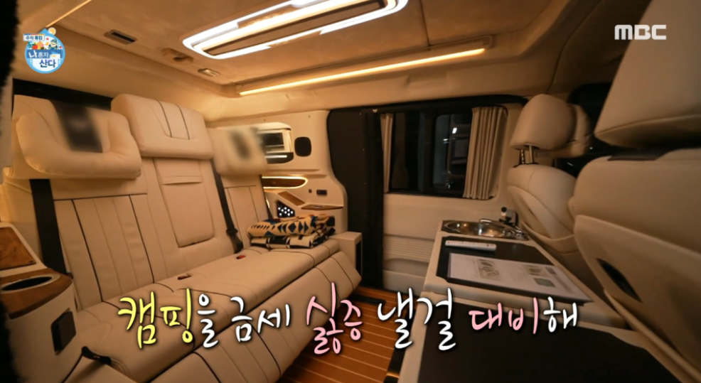 방송을 보면 전현무가 캠핑 현장에 도착하기 전에 장비들을 엄청 많이 준비합니다. 그래서 그런지 주차장에 주차된 전현무 캠핑카에도 기대감을 가지고 시선을 집중했습니다.